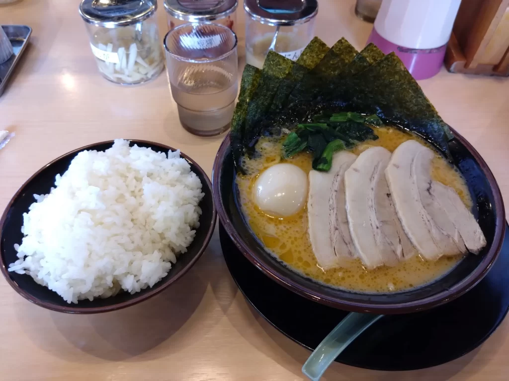前回の麵一家の時といい、他のお客はあまりライスを頼んでなく、ラーメン単体で食べている人が多いようだが、家系っておかず(ラーメン)と主食(ごはん)で成立する料理じゃないのか?🤔
