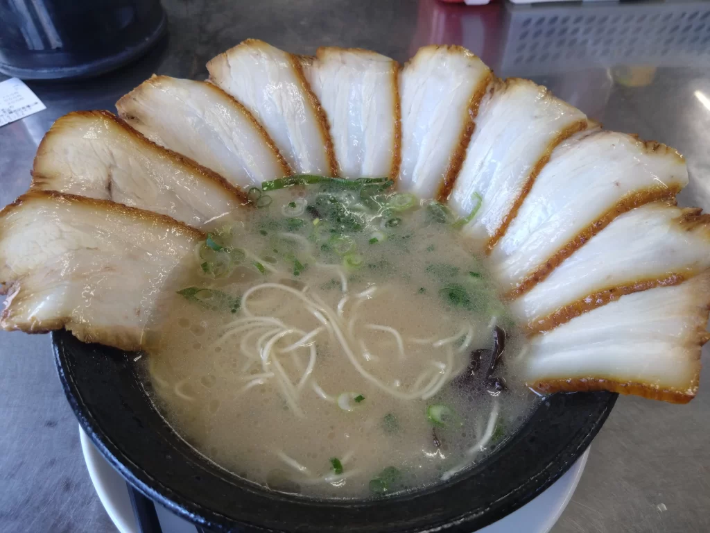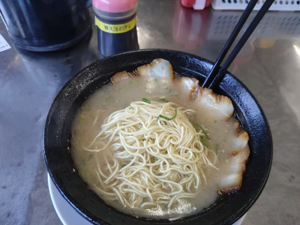 スープは昔ながらのとんこつで、こってりとろみのある塩味強めのスープ